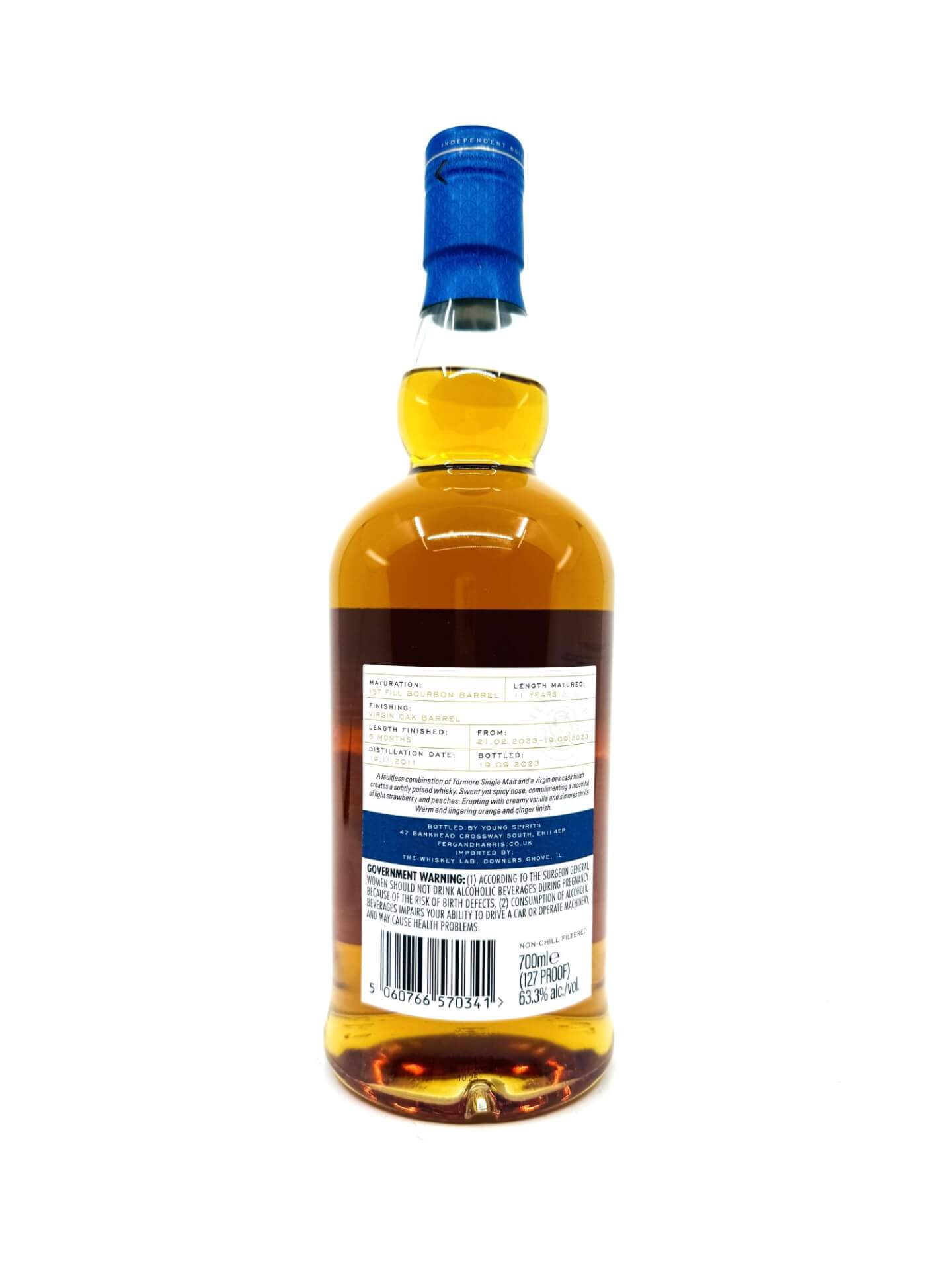 Matured in a first-fill Bourbon Barrel, finished in a Virgin Oak Barrel for 6 months