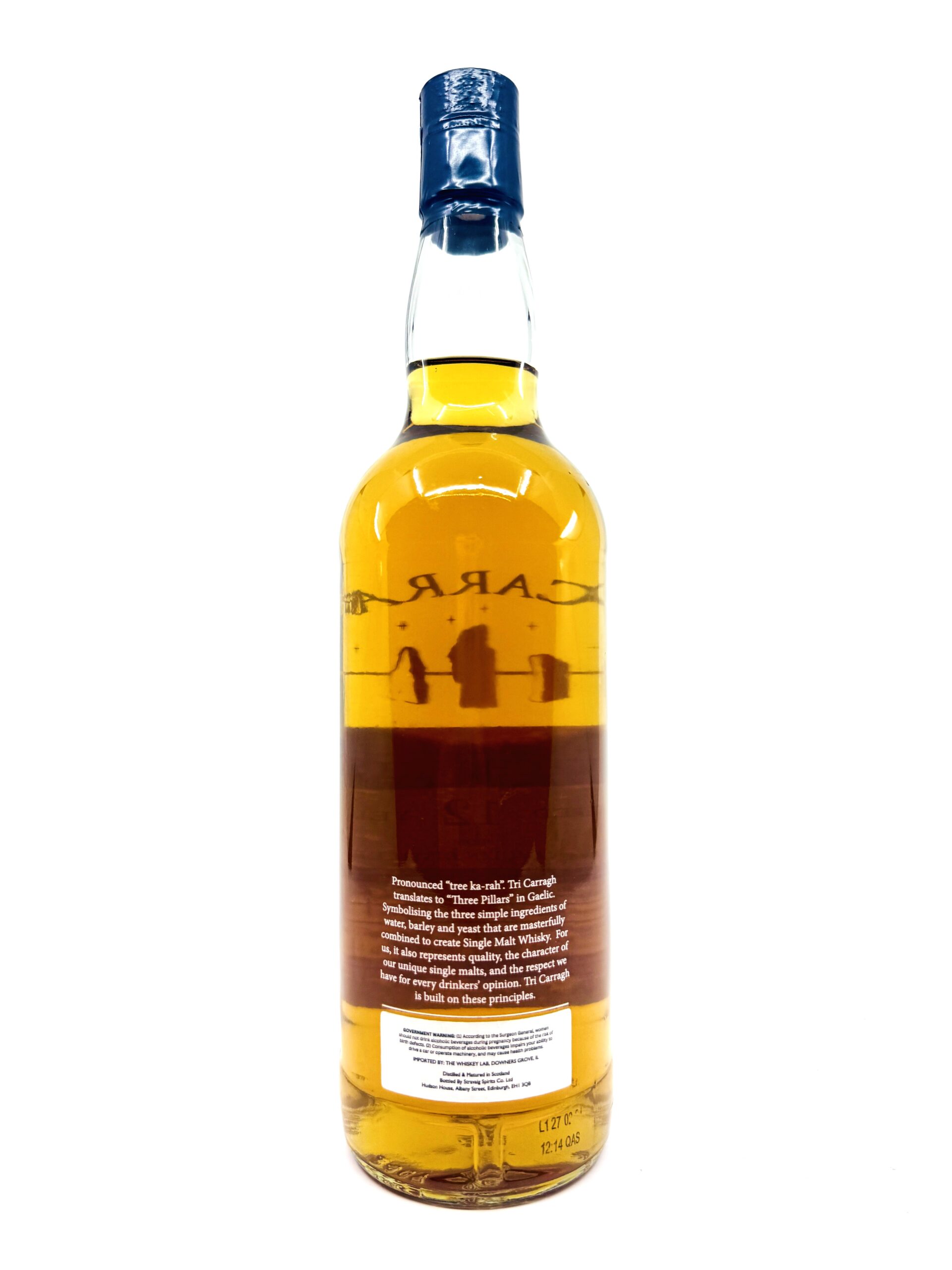 The name Tri Carragh is a tribute to the Gaelic phrase meaning “three pillars,” honoring the essential ingredients of whisky: water, barley, and yeast. They are a young independent bottler based in Edinburgh under the parent company name of Stravaig Spirits. The founders are Ryan McCafferty and Ola Lopatowska. They also own the brand Glenlaird Scotch Whisky and help others source and bottle their own casks of whisky. Pronounced “tree-ka-rah”.